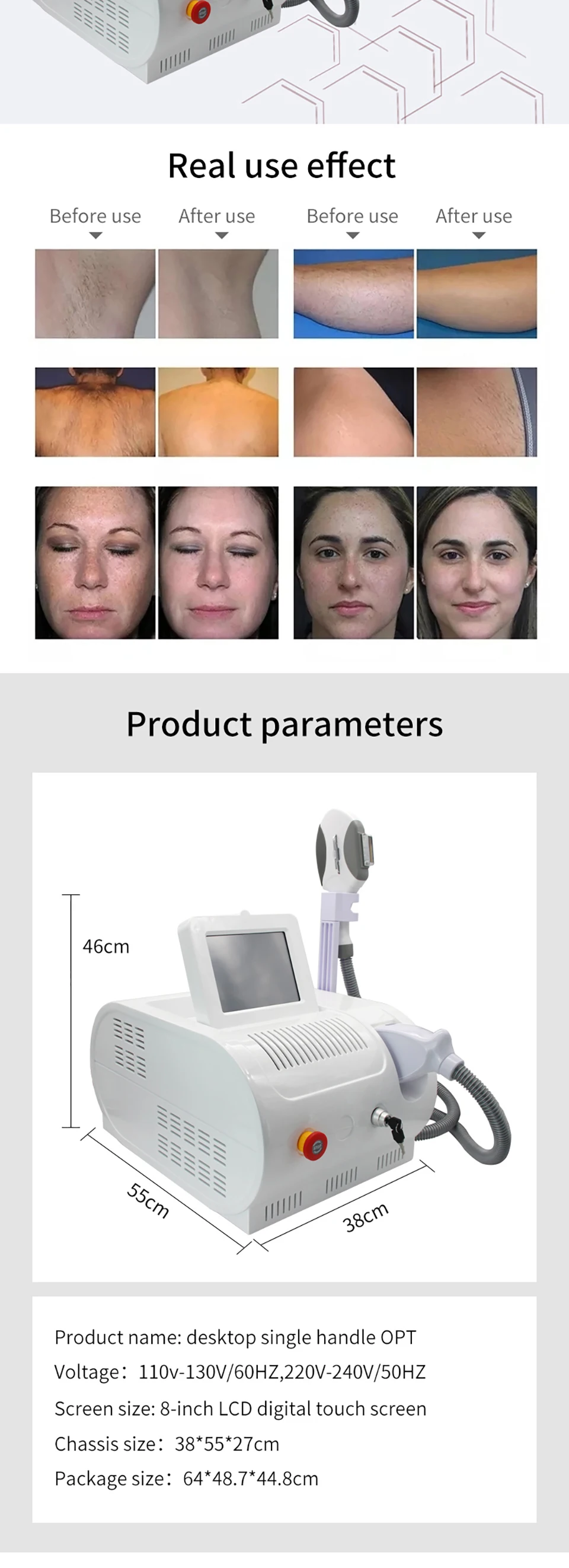 OPT+IPL laser hair remover has goods in European warehouses, American warehouses and Russian warehouses. You can receive your package quickly. The interface of the warehouse in Russia is Russian. You can easily operate and use the machine.